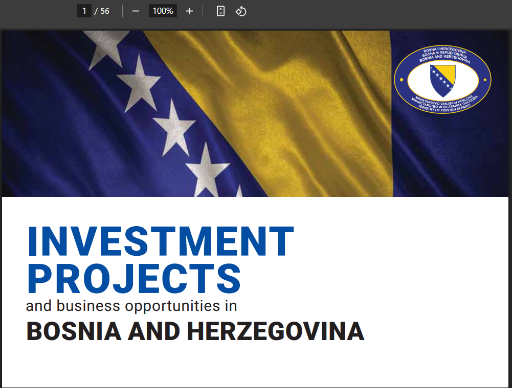 Το ΥΠΟΥΡΓΕΙΟ ΕΞΩΤΕΡΙΚΩΝ, Β1 Διεύθυνση Σχεδιασμού Εξωστρέφειας και Συντονισμού Φορέων Εξωστρέφειας ενημερώνει για επιχειρηματικά σχέδια (επενδύσεις, κατασκευές) στην Βοσνία – Ερζεγοβίνη.