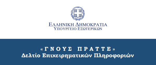 Το «Γνους Πράττε» που απευθύνεται σε κλαδικούς και επιχειρηματικούς φορείς, σε επιμελητήρια και επαγγελματικές ενώσεις, συντάσσεται από τη Β8 Διεύθυνση του Υπουργείου Εξωτερικών και αποτελεί σταχυολόγηση ειδήσεων και πληροφοριών από τις Αρχές μας στο εξωτερικό (Πρεσβείες, Προξενεία και Γραφεία Οικονομικών και Εμπορικών Υποθέσεων) καθώς και από άλλες πηγές (διεθνής Τύπος, διαδίκτυο κ.λπ.)